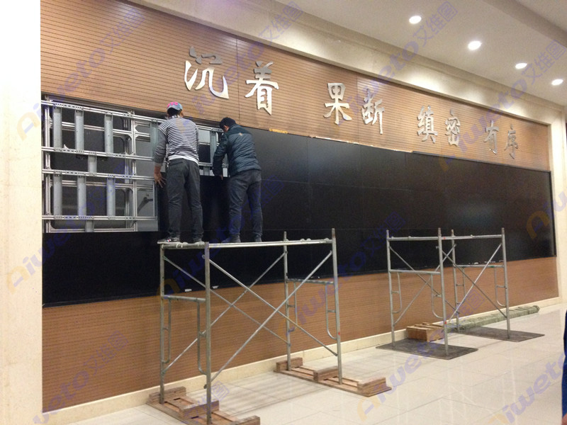 通過對客戶使用需求和部署環境的認真研究和考察,Aiweto(艾維圖)科技工程師給出了多套相關解決方案,最終選用了由40臺(Aiweto)55寸高亮液晶拼接單元組成的4×10大屏幕液晶拼接墻。(Aiweto)55寸液晶拼接單元采用工業級面板,采用先進的集成處理芯片,性能穩定,運動圖像補償等獨有的先進技術,有效的保證了輸出圖像的效果,支持7×24小時開機,拼接邊縫小,適合大屏液晶拼接項目應用。