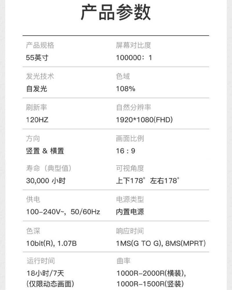 屏幕尺寸:55寸